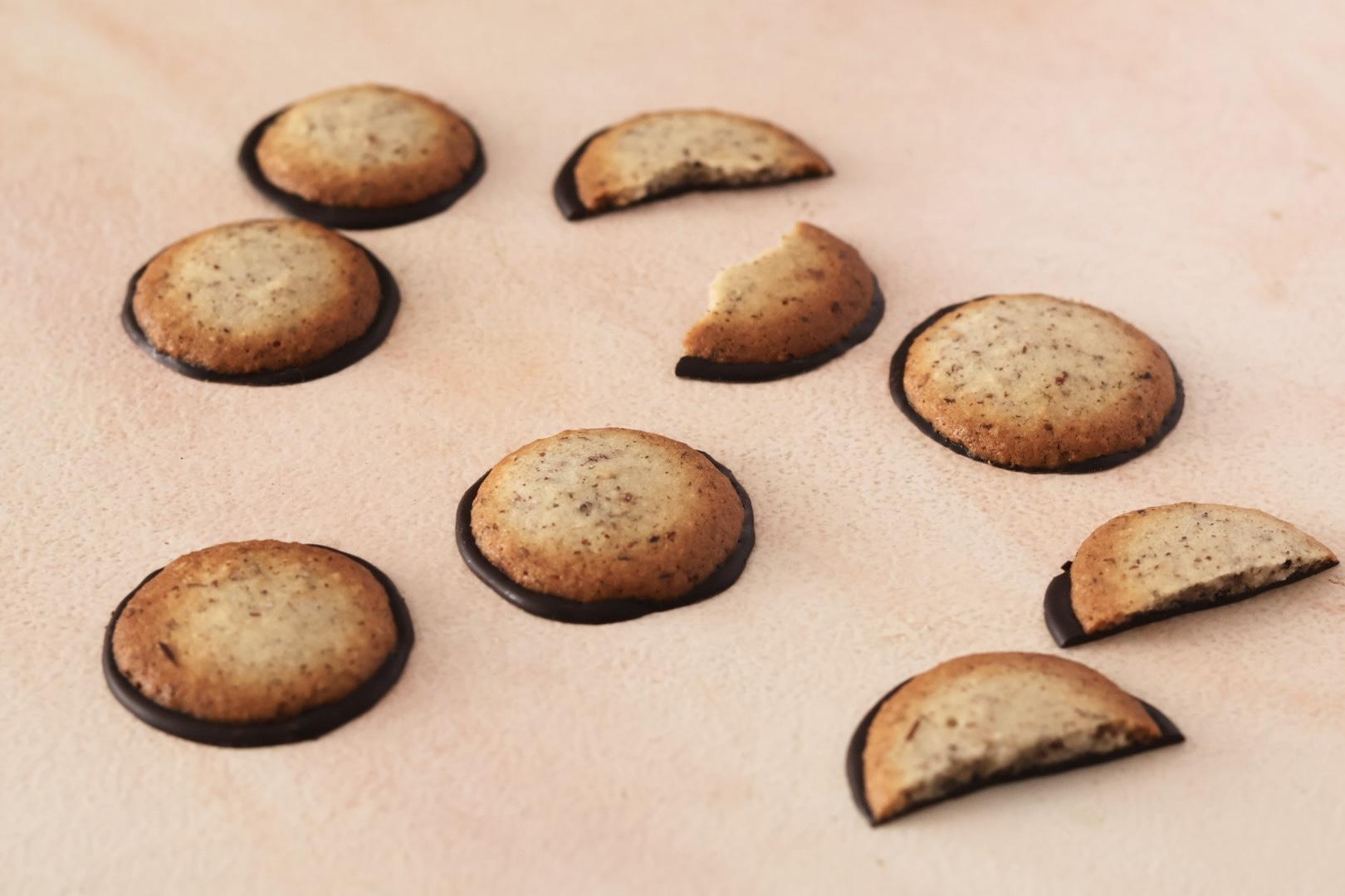 ヘーゼルナッツクッキーは寒い季節にしか作れないチョコレートを張り付けたクッキー。