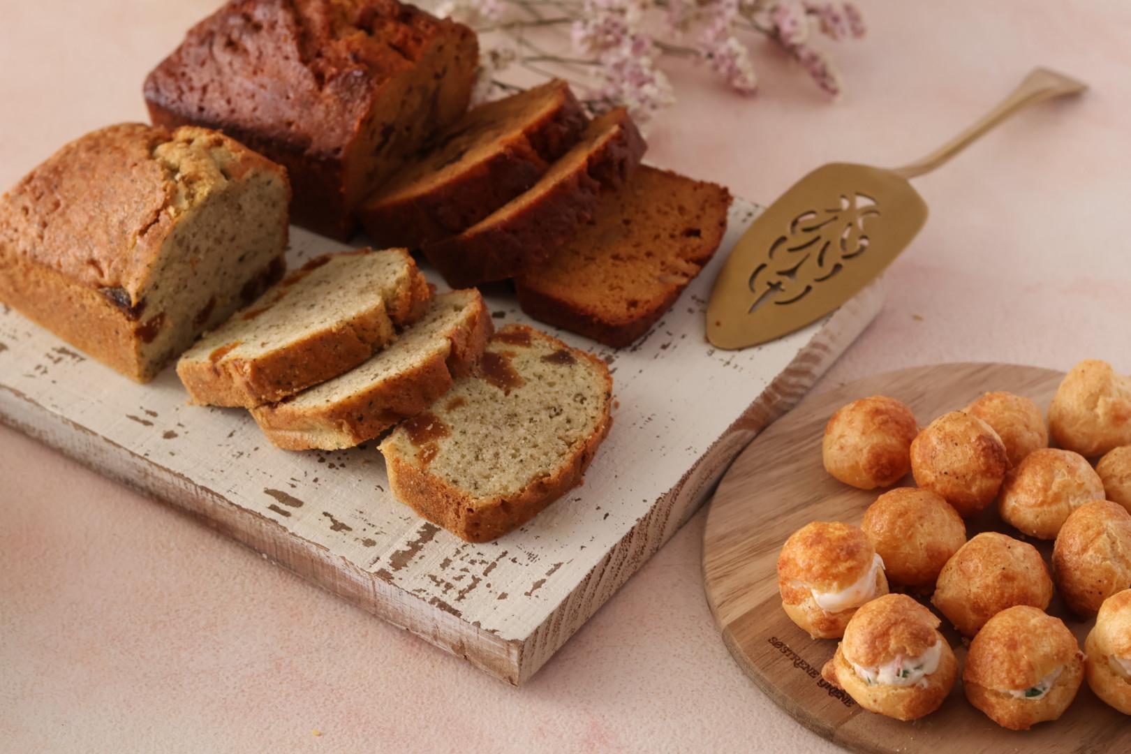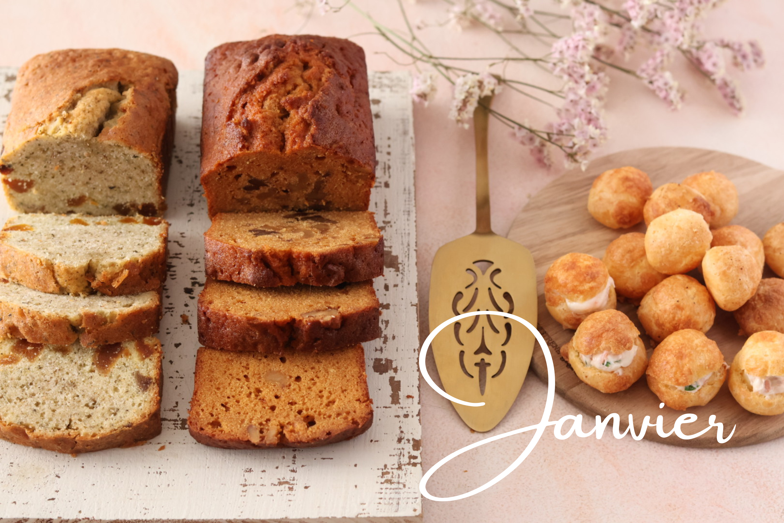 キャラメルとクルミのケーク1本、ジャスミンとアプリコットのケーク1本、グジェール15個くらい